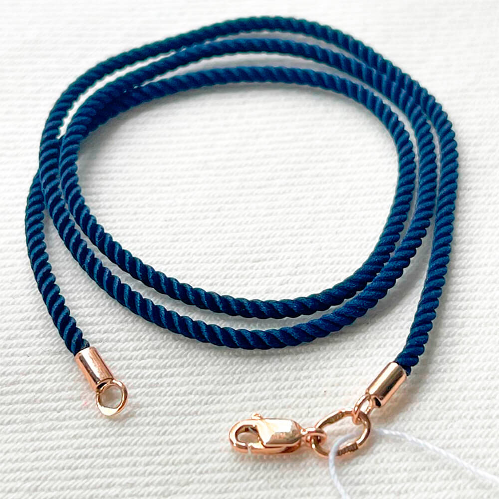 Ювелирный шелковый шнурок темно-синего цвета с замком из красного золота 585 пробы – замечательная альтернатива золотым цепочкам.