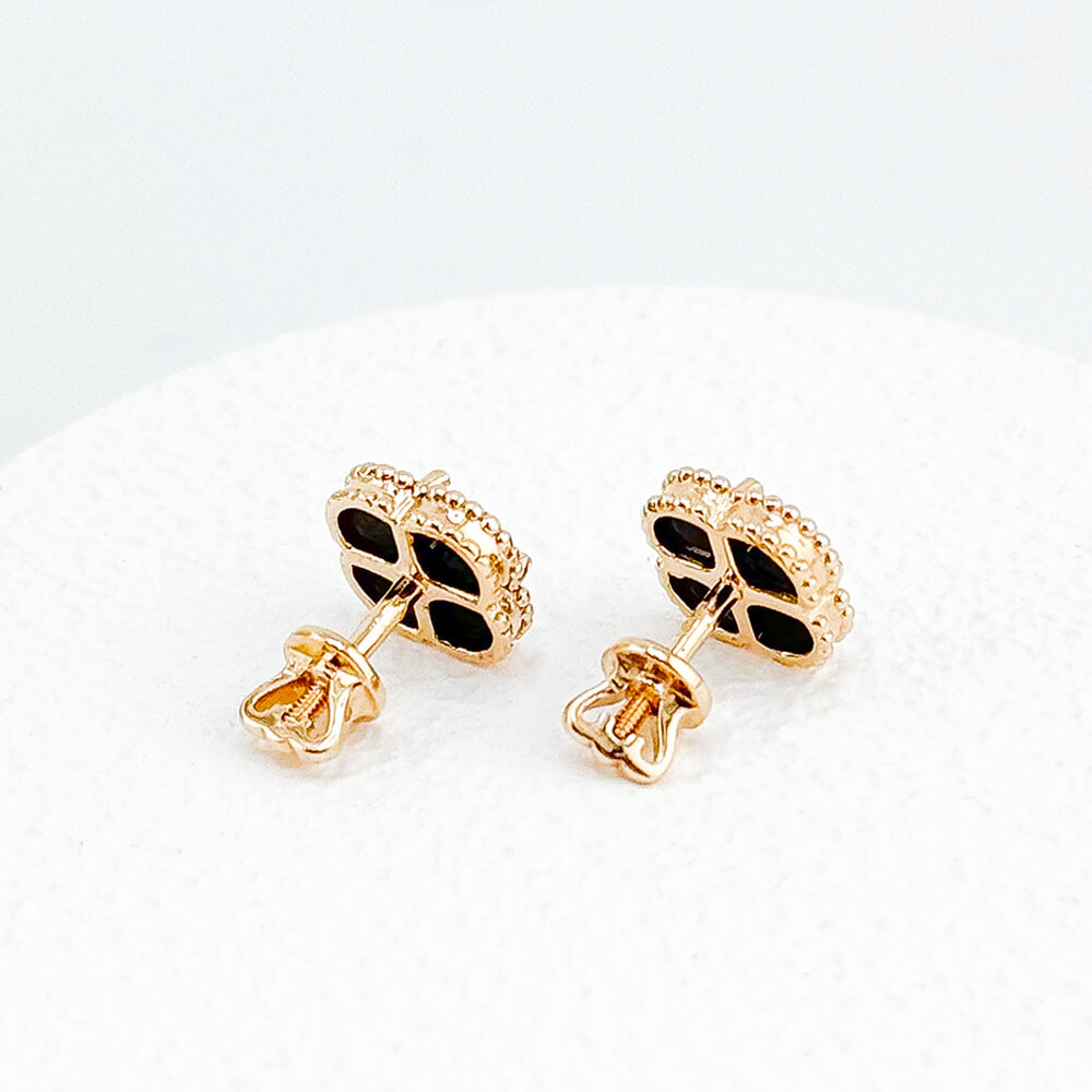 Золотые серьги-пусеты Клевер с ониксом.