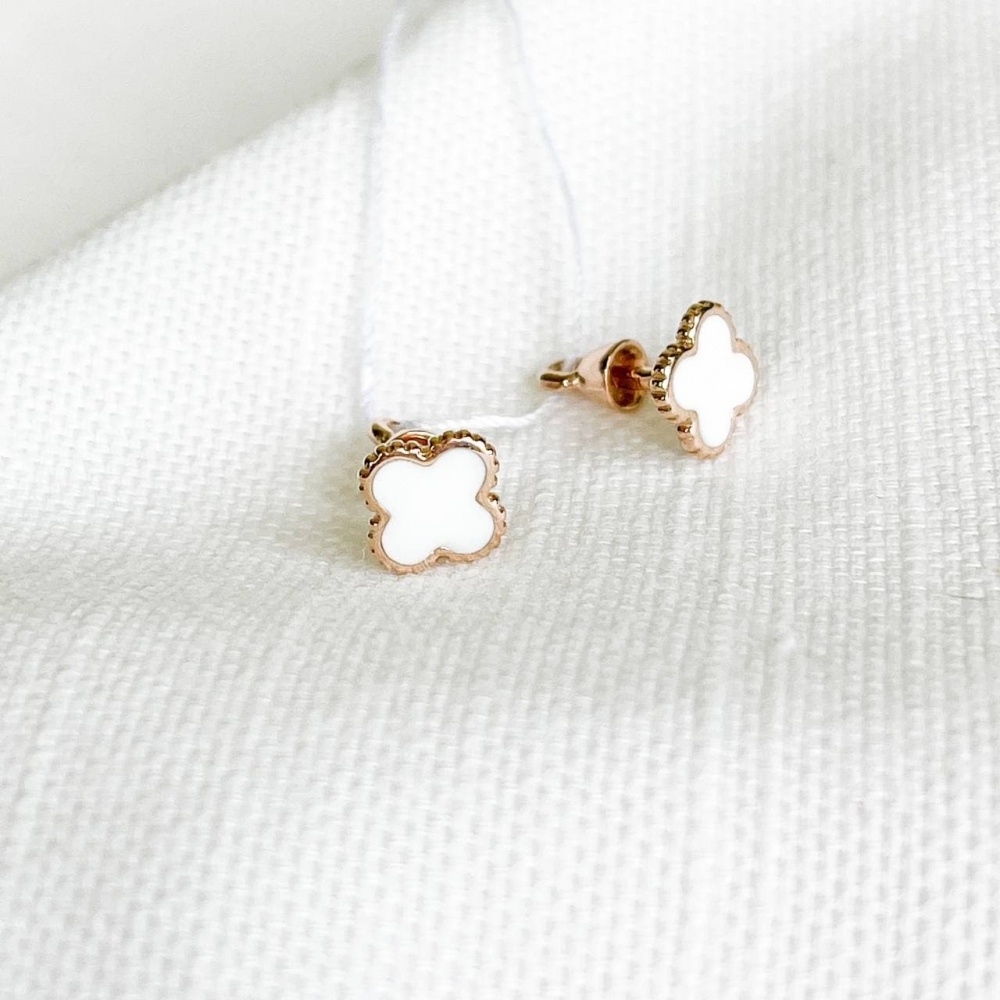 Золотые серьги-пусеты Клевер с эмалью.