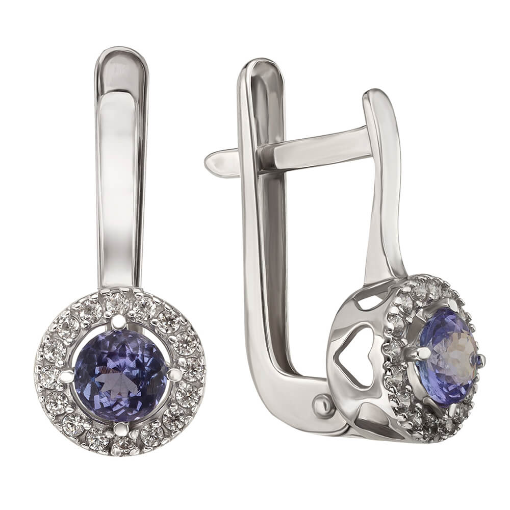 Золотые сережки с танзанитом и фианитами. Артикул: 004374