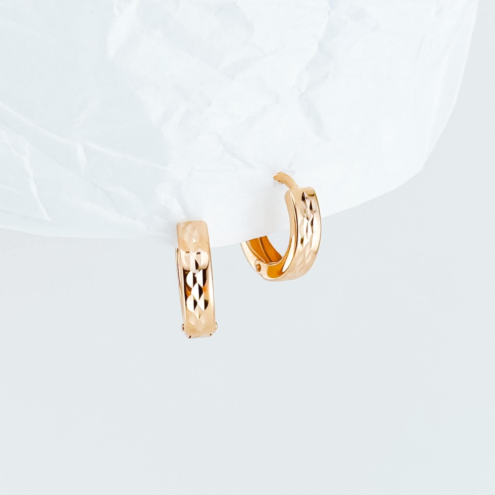 Золотые серьги-кольца с алмазной гранью.