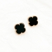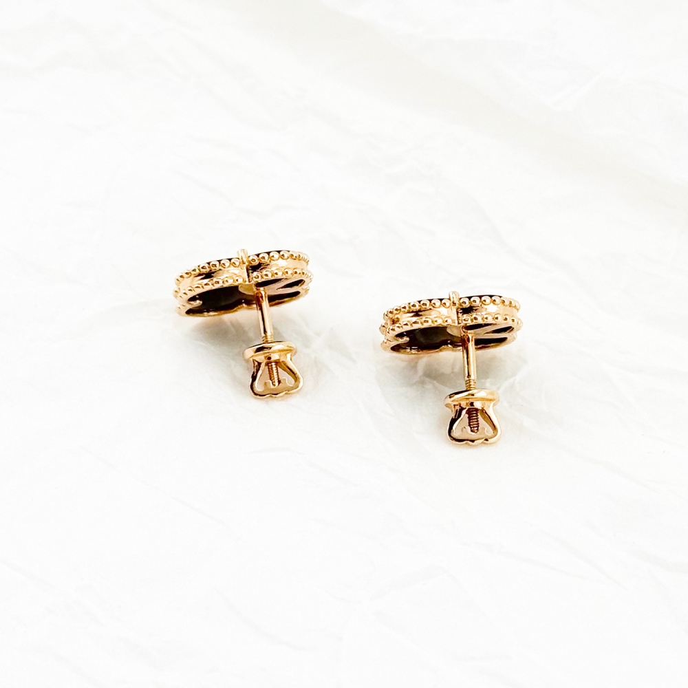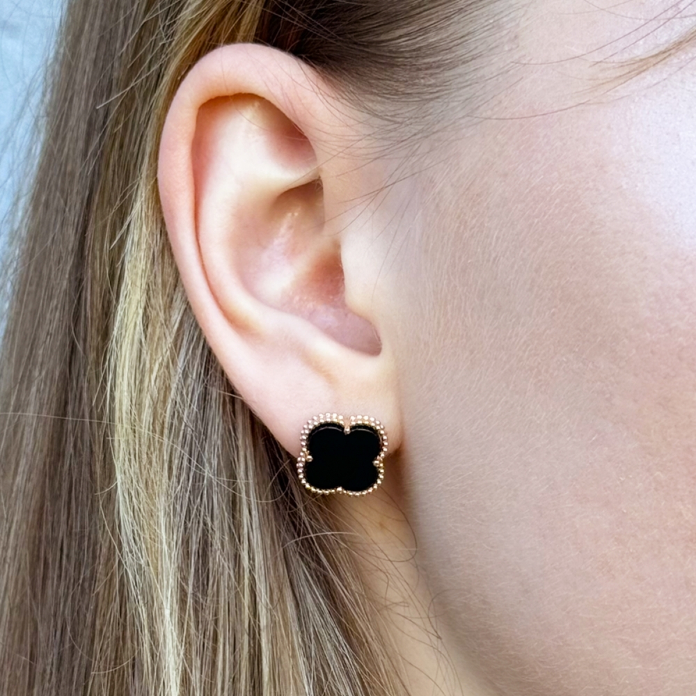 Золотые серьги-пусеты Клевер с ониксом.