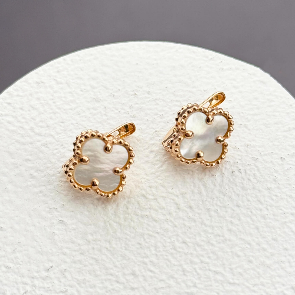 Золотые серьги Клевер с перламутром. Артикул 005175