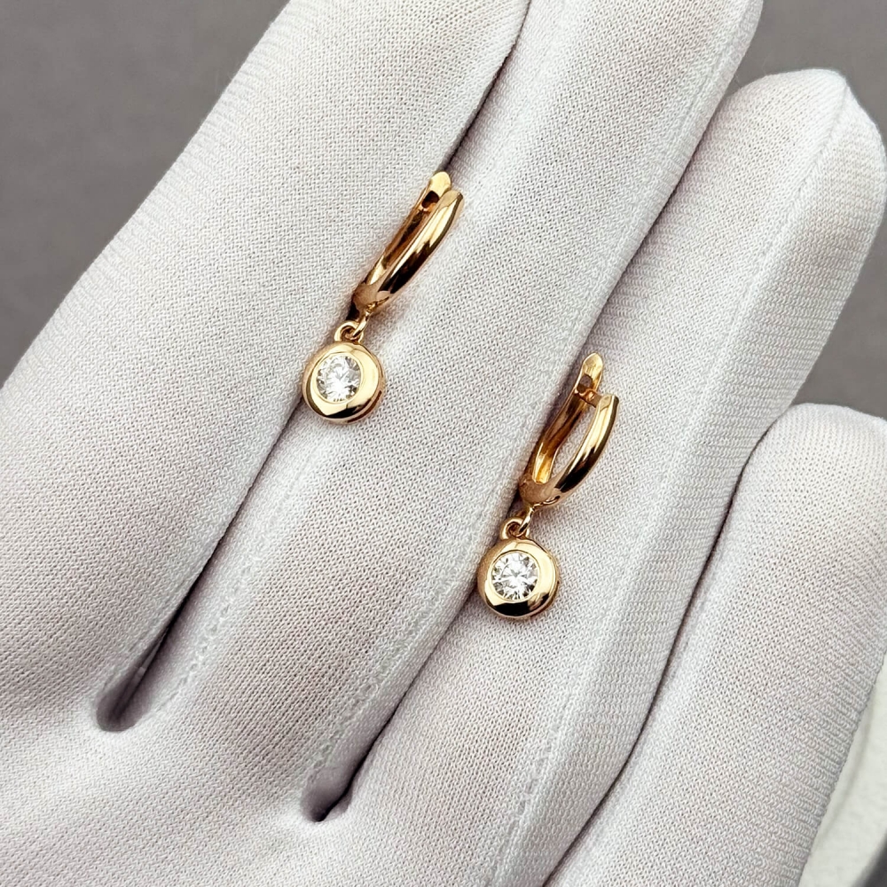 Золотые серьги-подвески с фианитами. Артикул: 010056.