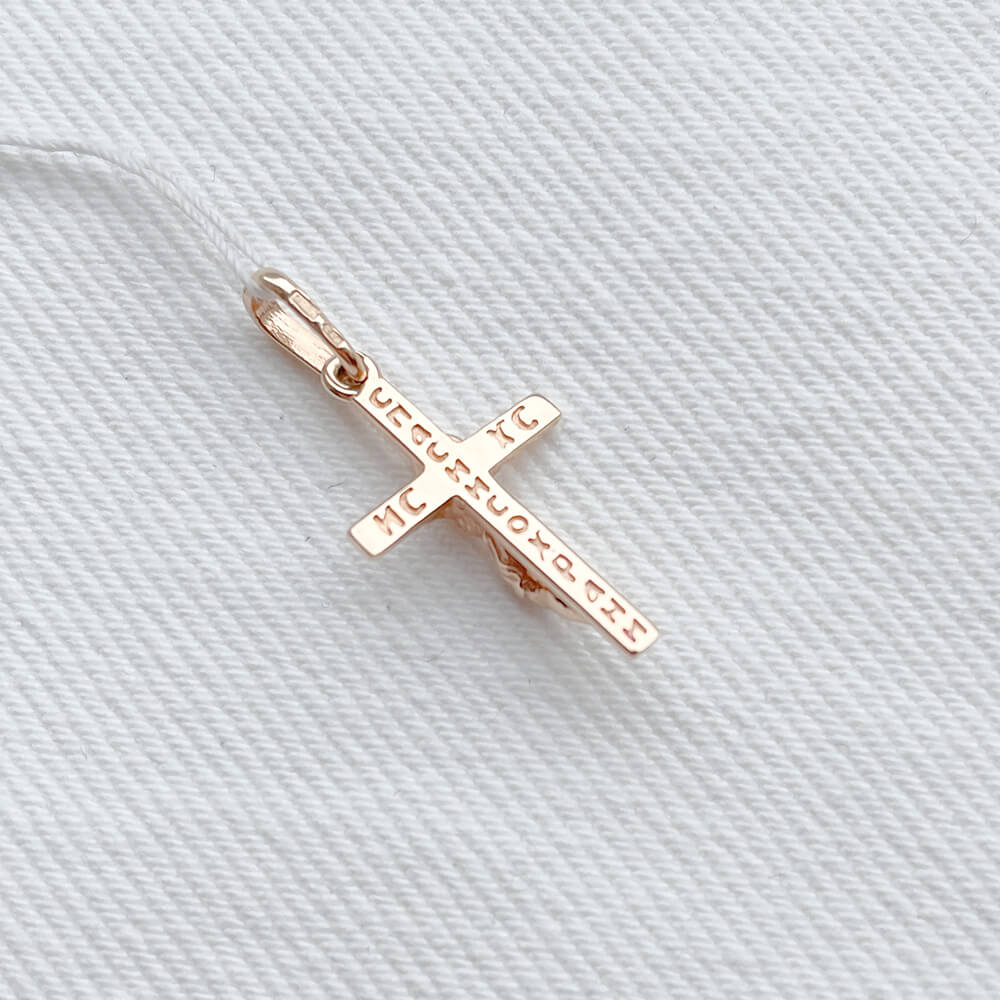 Крест с распятием из красного золота 585 пробы.