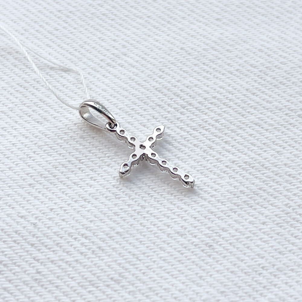 Крестик из белого золота 585 пробы с фианитами.