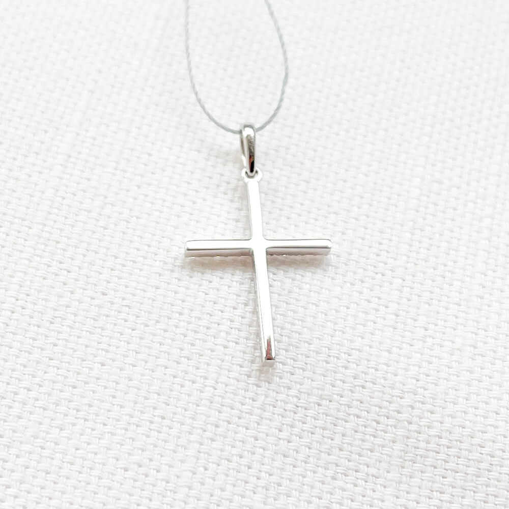 Декоративный крест из белого золота 585 пробы со вставкой фианитов.