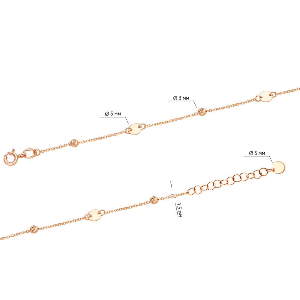 Золотой браслет (анклет) с алмазными шариками и монетками. Артикул: 011174.