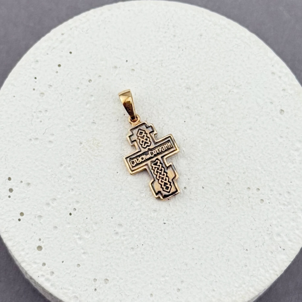 Золотой крестик с чернением и распятием. Артикул: 001081.