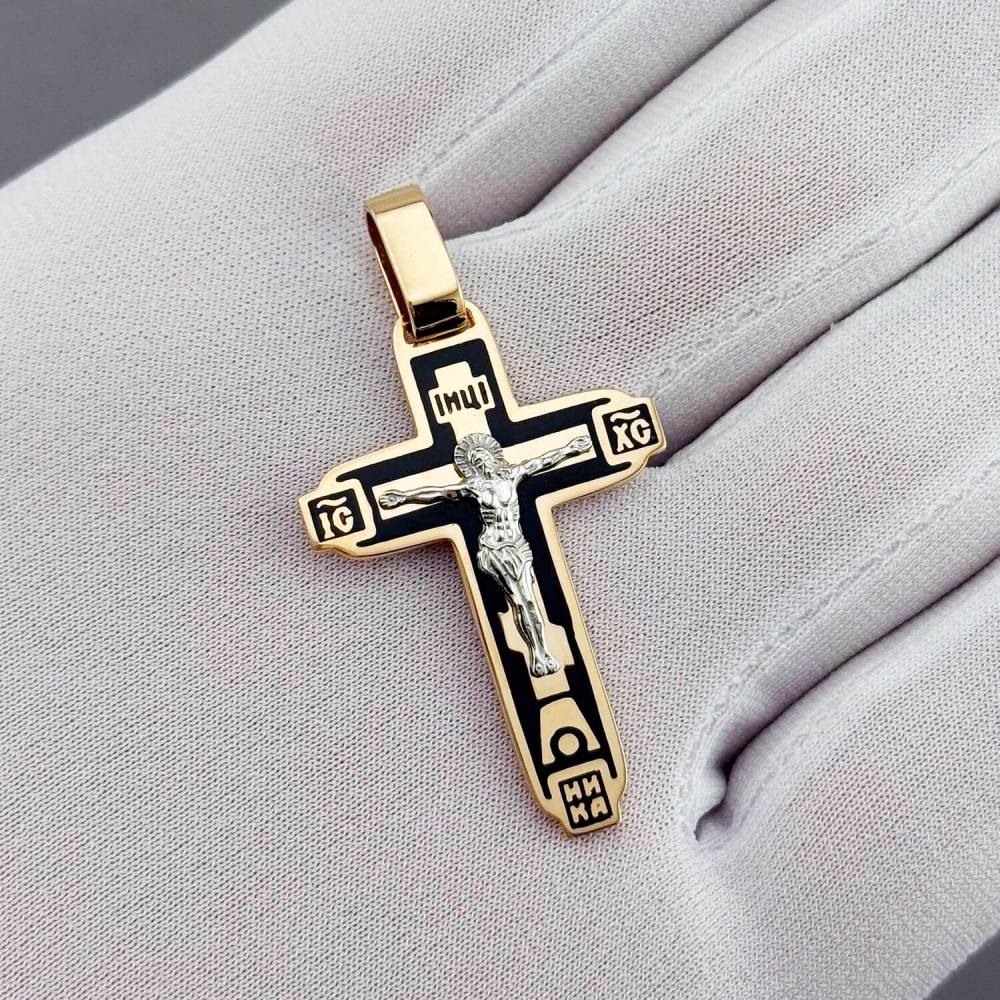Крест с распятием из красного золота 585 пробы.