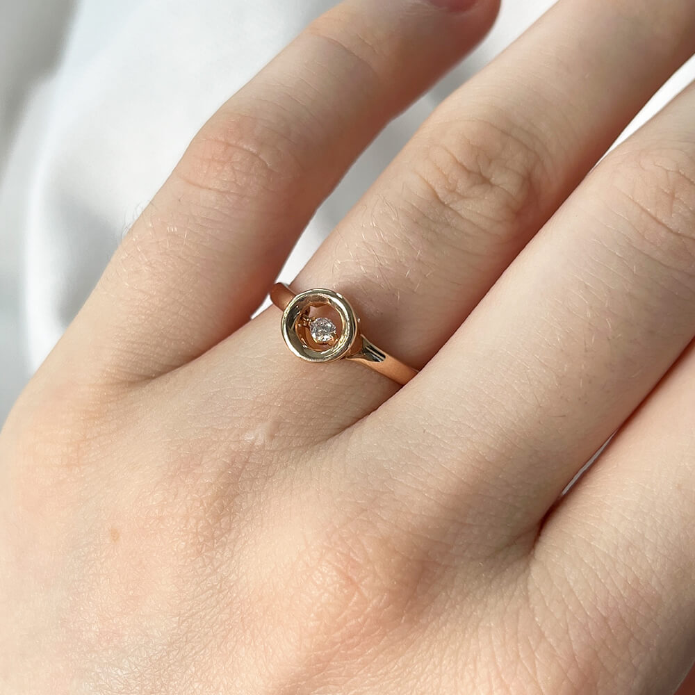 Золота каблучка з плаваючим фіанітом. Артикул: 001854