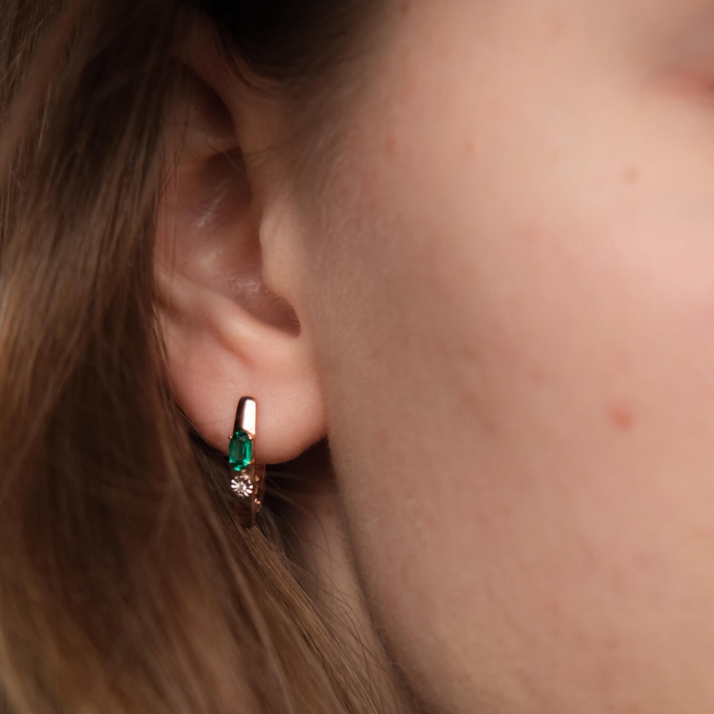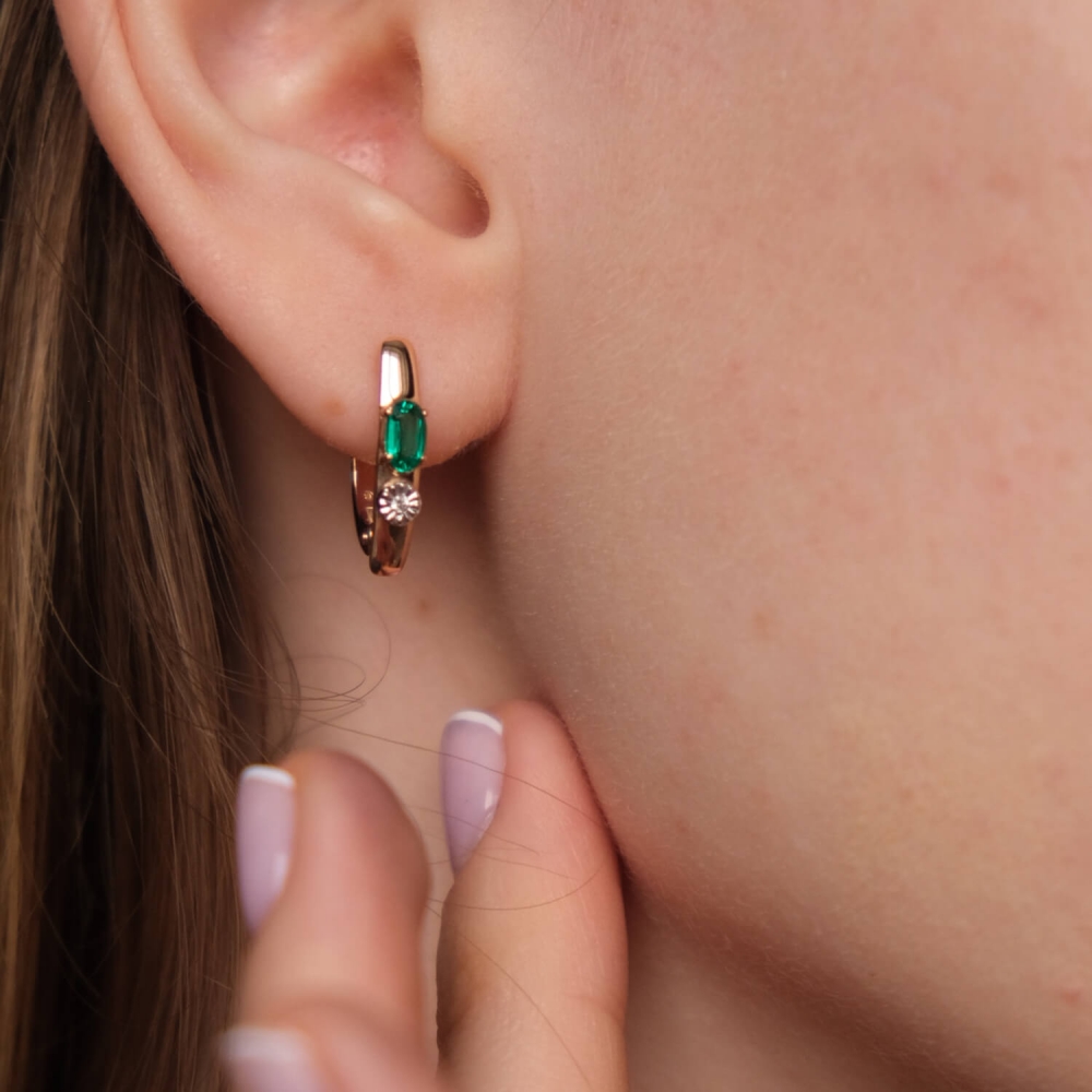 Золоті сережки з діамантами та смарагдами.