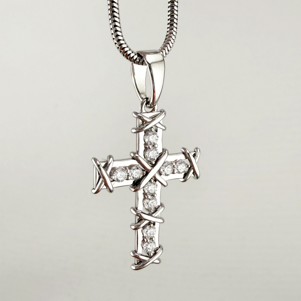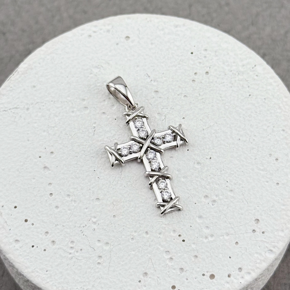 Золотий хрестик зі вставкою фіанітів. Артикул: 011136