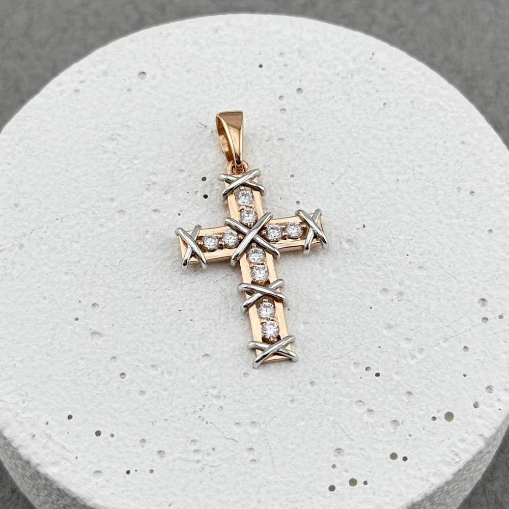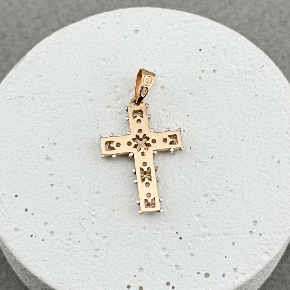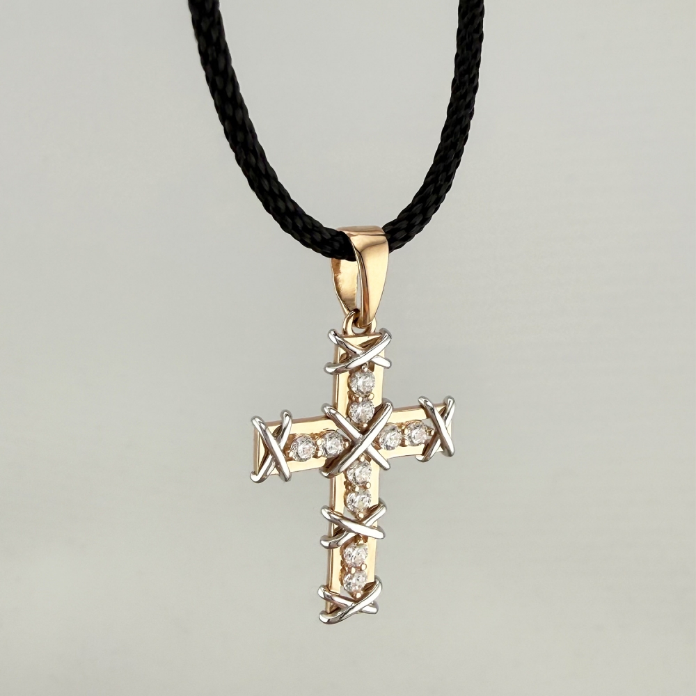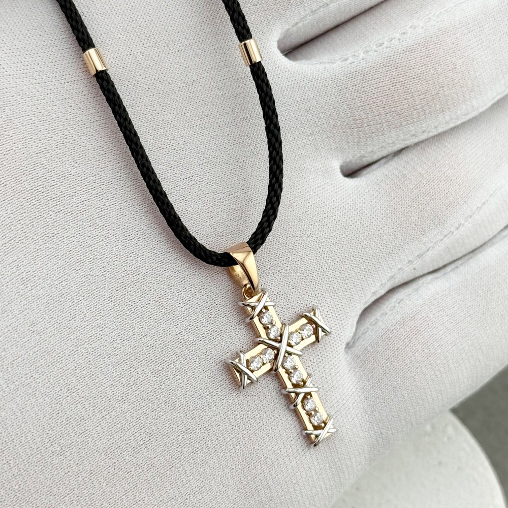 Золотий хрестик зі вставкою фіанітів. Артикул: 011138.